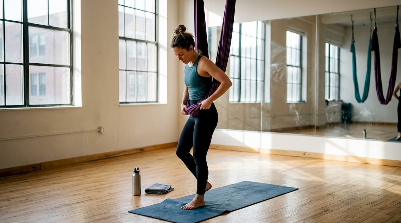 The mental well-being benefits are just as real. When your body feels safe and supported in the hammock, your nervous system relaxes. Anxiety about falling or hurting yourself drops. You breathe more deeply. That is when the meditative quality of aerial yoga kicks in, and you get both the physical and mental payoff in a single session. For a thorough breakdown of staying safe in the air, the aerial yoga safety guide is a solid resource to bookmark.
