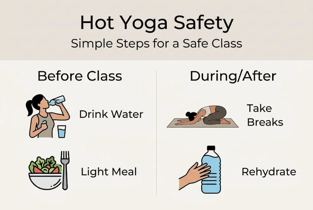 For a full breakdown of what to do the day before and morning of class, our guide on preparing for hot yoga covers the complete picture.
